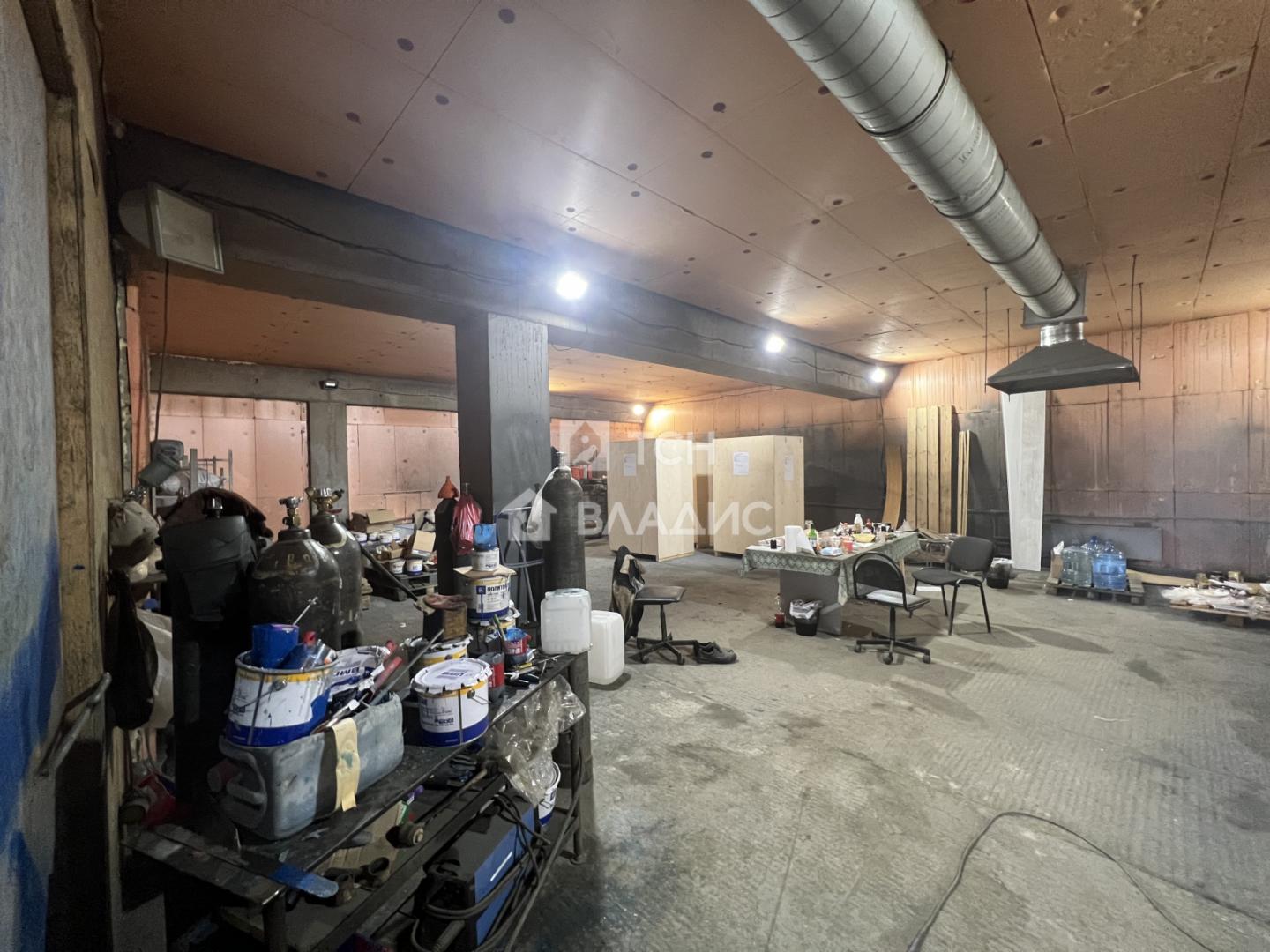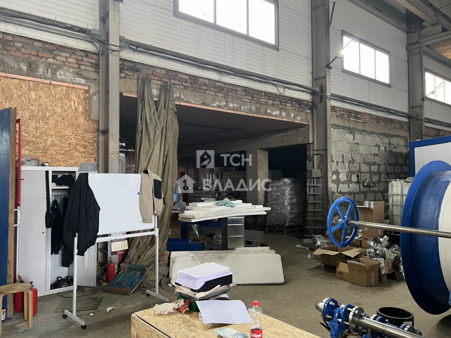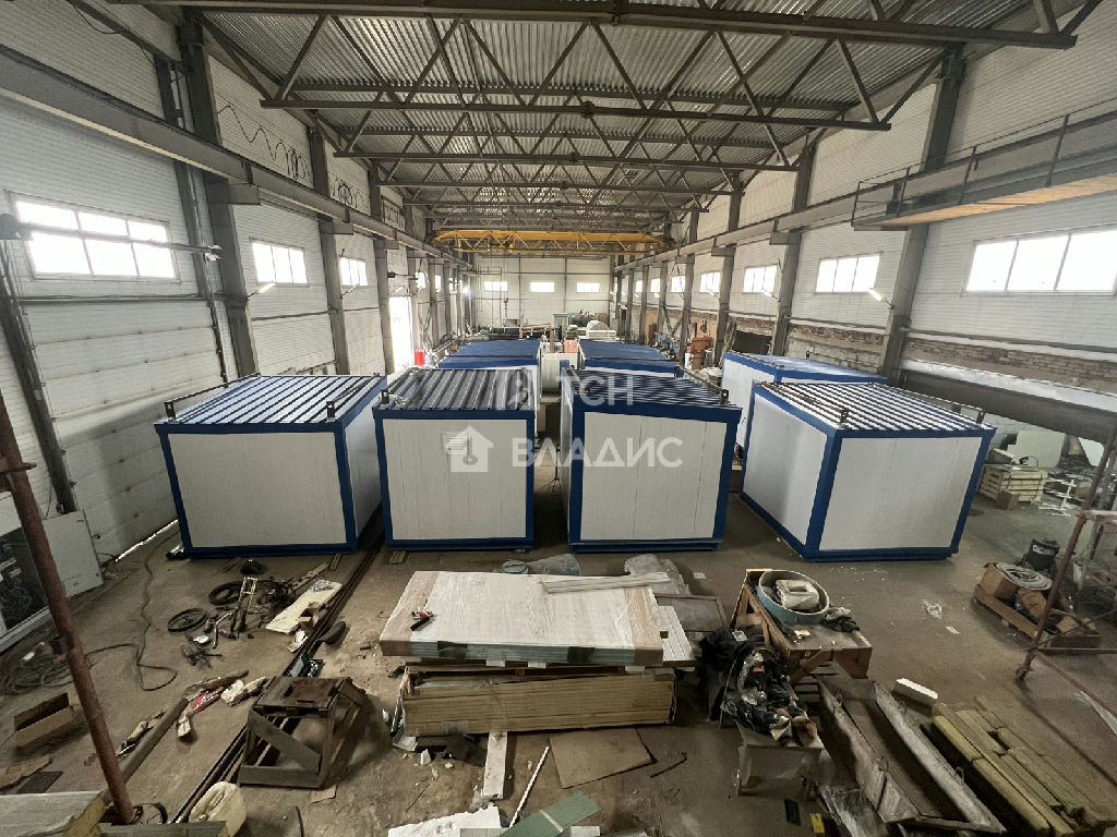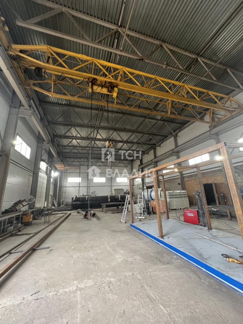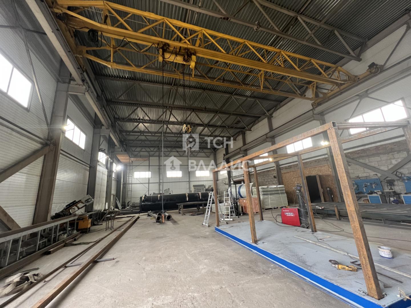 производственно-складской корпус (назначение: нежилое, площадь 1 049 метров, этажей 1, высота потолков 9.6 метров, ширина пролета 18 метров, кран-балка 6.3 тонн, имеет общие границы со входами в административно-бытовой корпус и на нижний уровень автостоянки легкового автотранспорта.
